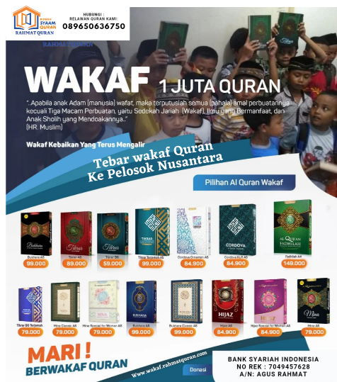 Rahmat Quran Tetap berkomitmen untuk menghimpun dan menyalurkan wakaf Iqro, Juz amma dan Al Qur’an, untuk memberikan kemudahan...